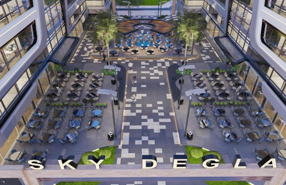 عيادة للإيجار امام جامعة الإبتكار والموقف الإقليمي بالعاشر من رمضان في مول سكاي دجلة تشطيب متميز موقع متميز
